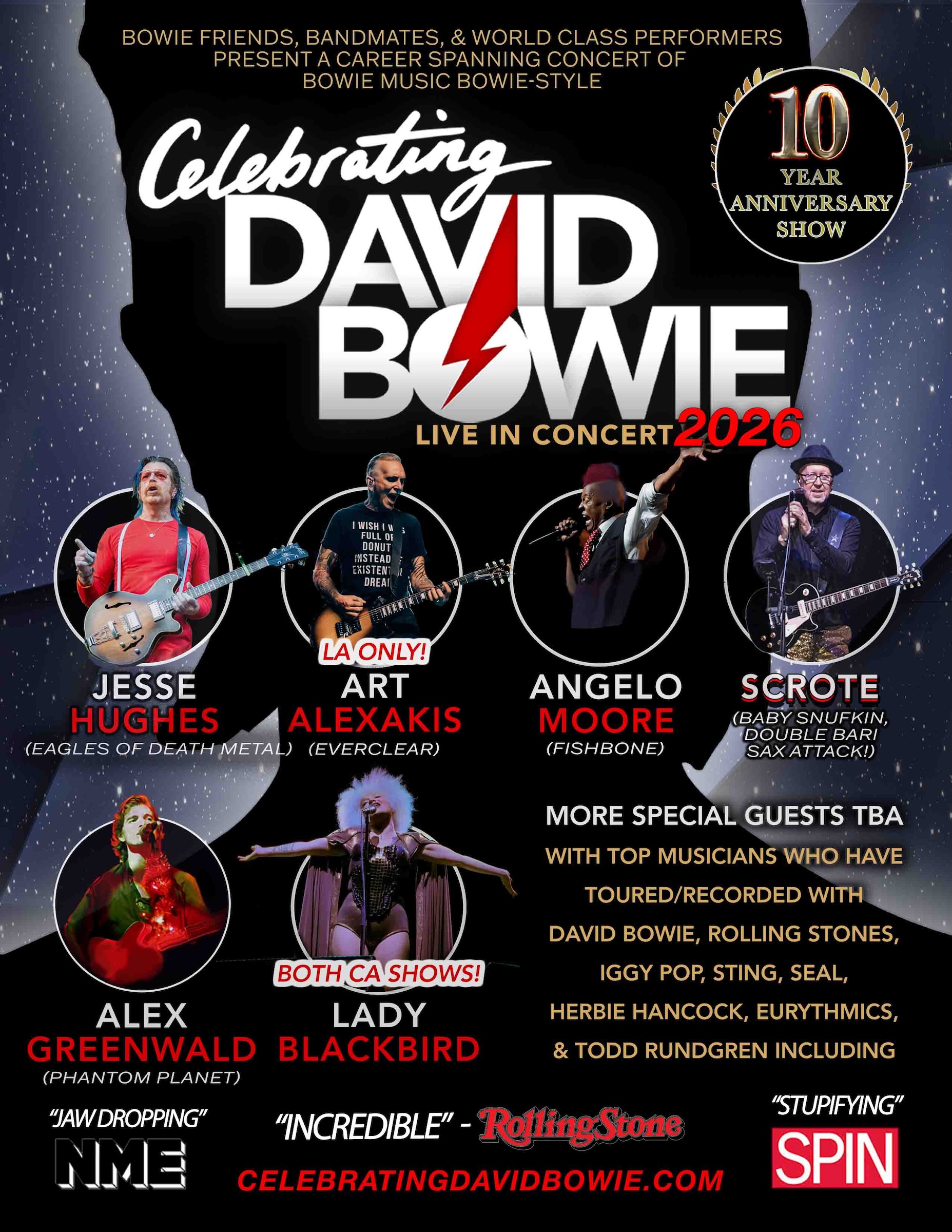 AN EVER GROWING COLLECTION OF BOWIE FRIENDS, BANDMATES, & WORLD CLASS MUSICIANS PERFORMING EPIC CAREER SPANNING CONCERTS OF BOWIE MUSIC, BOWIE-STYLE!
